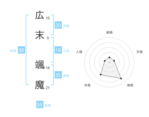 広末 颯魔さんの総格は55画の1点!
