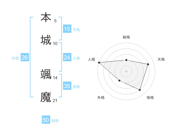 本城 颯魔さんの総格は50画の2点!
