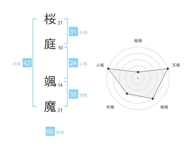 桜庭 颯魔さんを姓名の画数から五運を鑑定