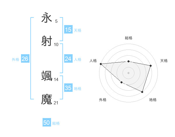 永射 颯魔さんの総格は50画の2点!