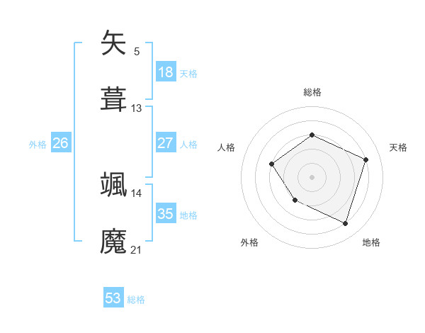 矢葺 颯魔さんを姓名の画数から五運を鑑定
