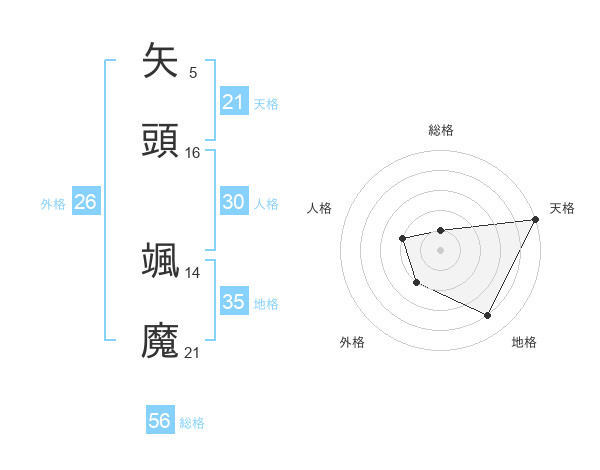 矢頭 颯魔さんの天格は21画の5点!