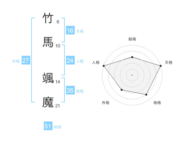 竹馬 颯魔さんの総格は51画の3点!