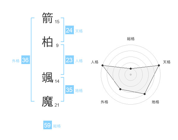 箭柏 颯魔さんの天格は24画の5点!