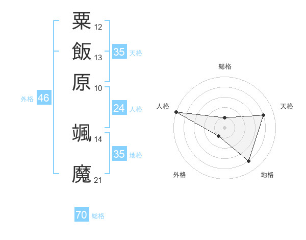 粟飯原 颯魔さんを姓名の画数から五運を鑑定
