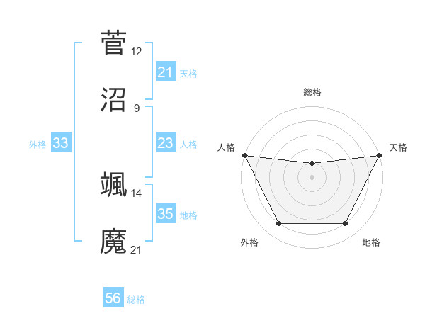 菅沼 颯魔さんを姓名の画数から五運を鑑定