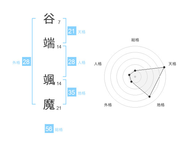 谷端 颯魔さんを姓名の画数から五運を鑑定