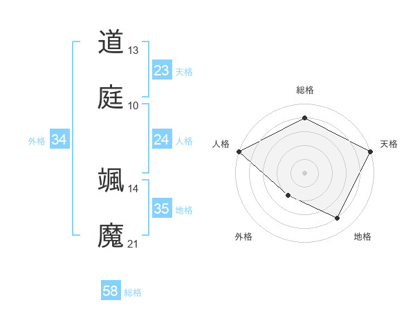 道庭 颯魔さんの総格は58画の4点!