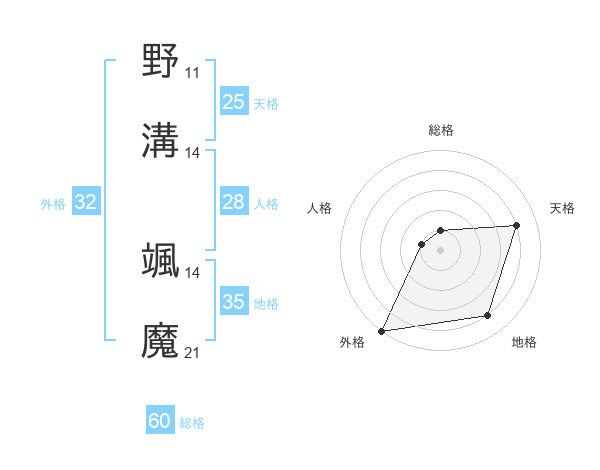 野溝 颯魔さんの総格は60画の1点!