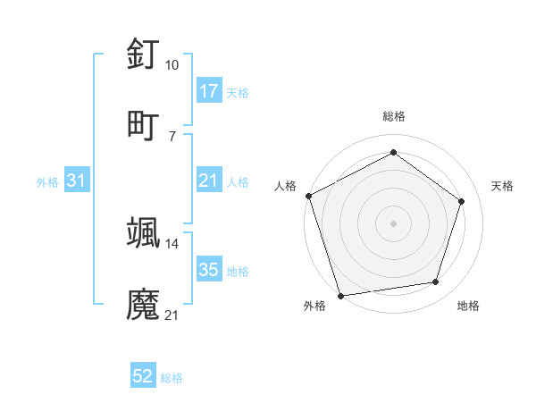 釘町 颯魔さんを姓名の画数から五運を鑑定
