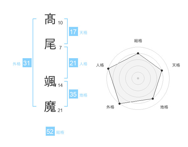 髙尾 颯魔さんを姓名の画数から五運を鑑定