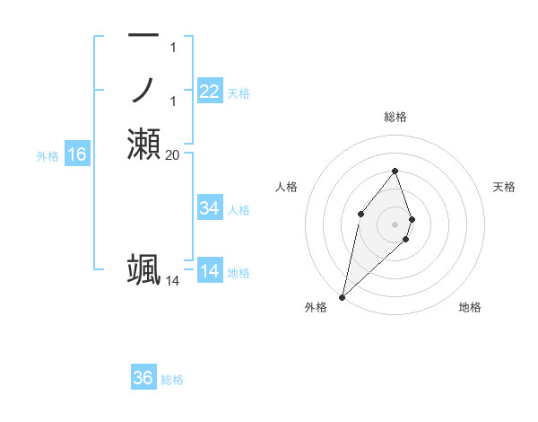一ノ瀬 颯さんの天格は22画の1点!