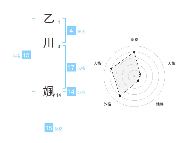 乙川 颯さんの外格は15画の4点!