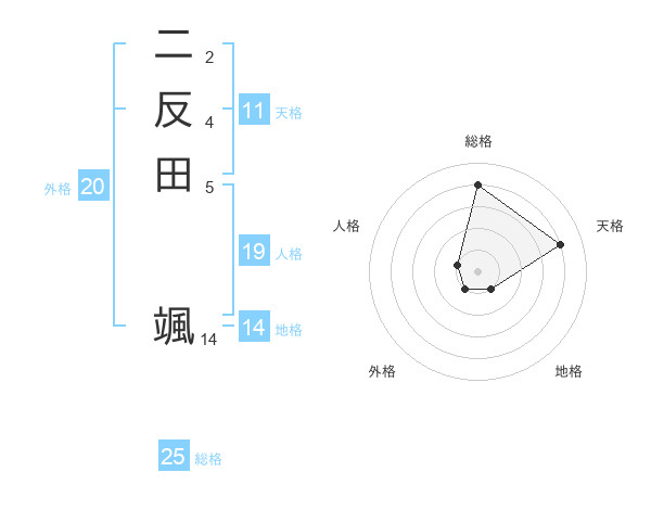 二反田 颯さんの総格は25画の4点!