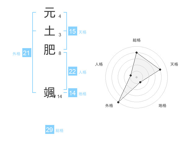 元土肥 颯さんを姓名の画数から五運を鑑定