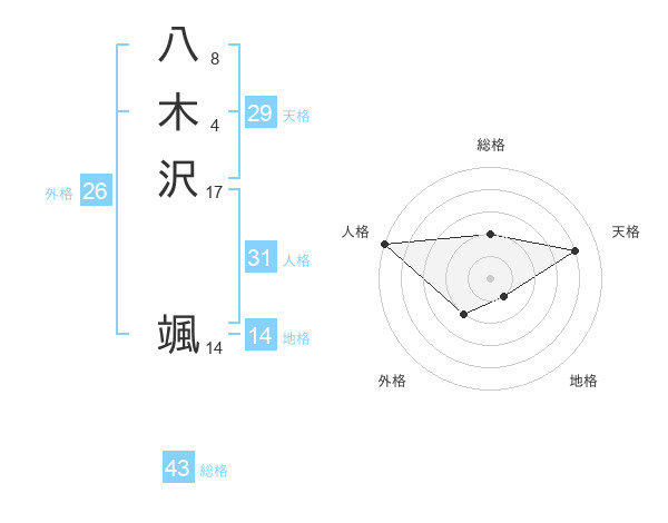 八木沢 颯さんを姓名の画数から五運を鑑定