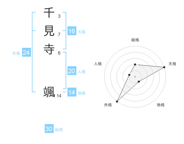 千見寺 颯さんを姓名の画数から五運を鑑定