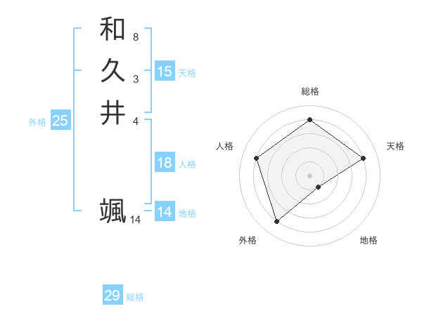 和久井 颯さんの総格は29画の4点!