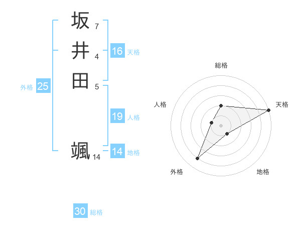 坂井田 颯さんを姓名の画数から五運を鑑定