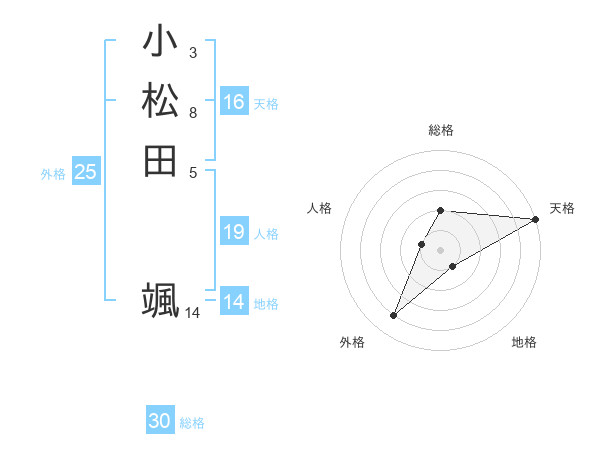 小松田 颯さんの天格は16画の5点!