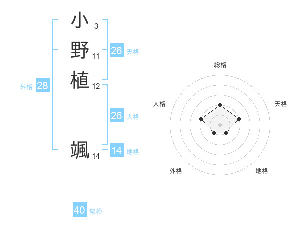 小野植 颯さんの総格は40画の2点!