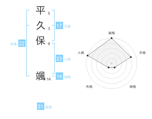 平久保 颯さんの天格は17画の4点!