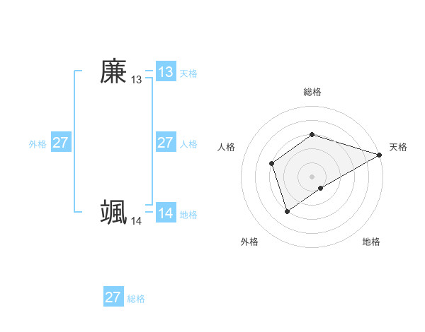 廉 颯さんの総格は27画の3点!