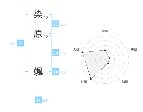 染原 颯さんの総格は34画の2点!