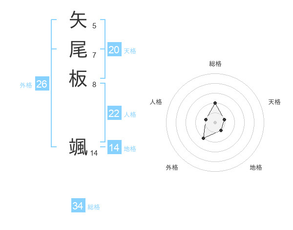 矢尾板 颯さんを姓名の画数から五運を鑑定