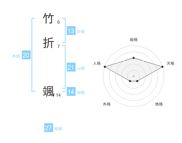 竹折 颯さんの外格は20画の1点!