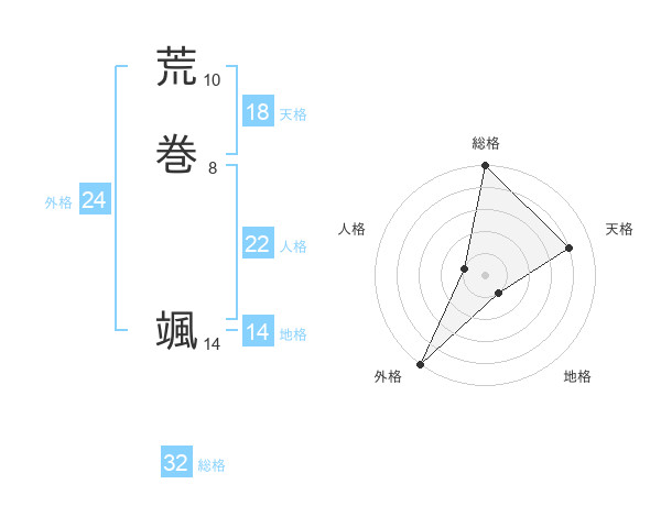 荒巻 颯さんの総格は32画の5点!