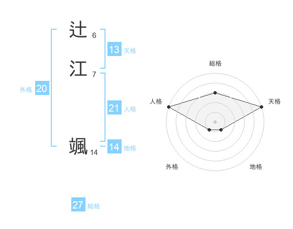 辻江 颯さんの総格は27画の3点!