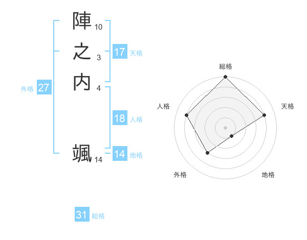 陣之内 颯さんの総格は31画の5点!