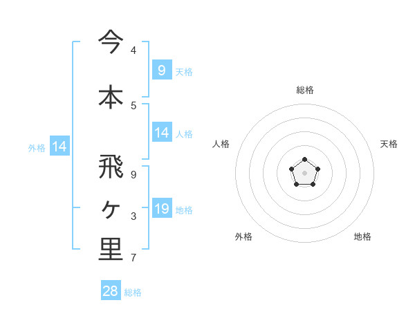 今本 飛ヶ里さんを姓名の画数から五運を鑑定