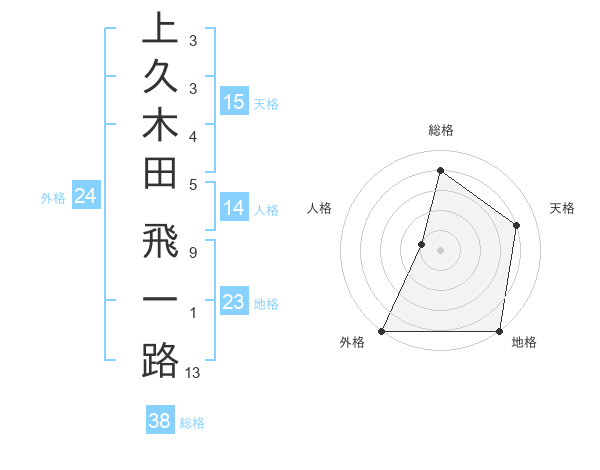 上久木田 飛一路さんの総格は38画の4点!