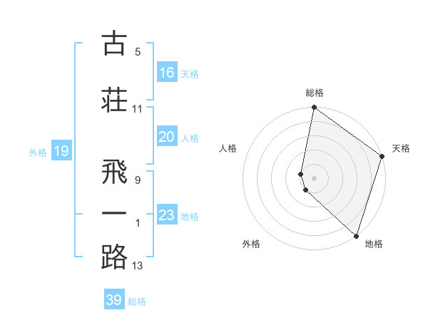 古荘 飛一路さんの地格は23画の5点!