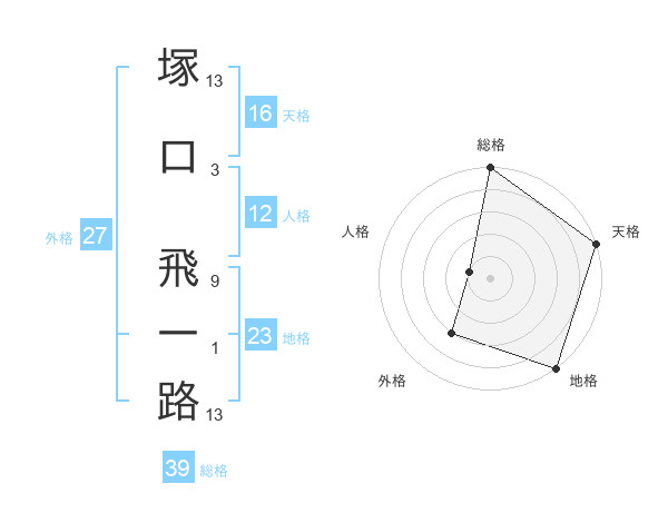 塚口 飛一路さんを姓名の画数から五運を鑑定