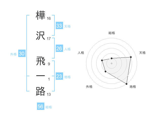 樺沢 飛一路さんを姓名の画数から五運を鑑定