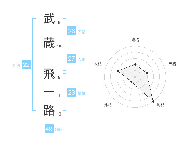 武蔵 飛一路さんを姓名の画数から五運を鑑定