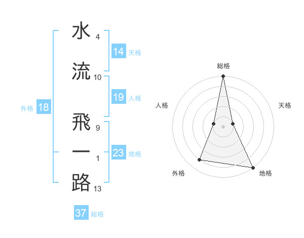 水流 飛一路さんを姓名の画数から五運を鑑定