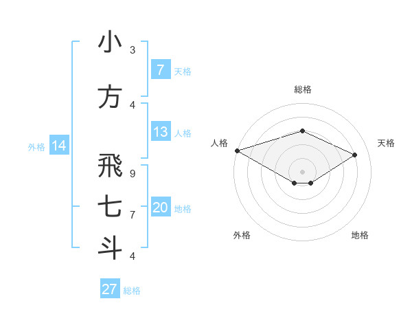小方 飛七斗さんを姓名の画数から五運を鑑定