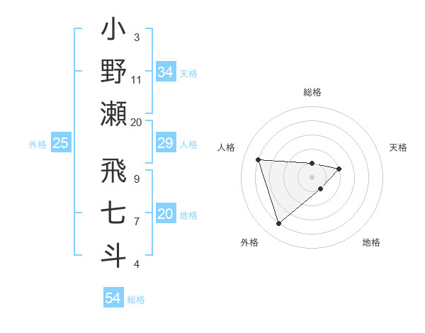 小野瀬 飛七斗さんを姓名の画数から五運を鑑定