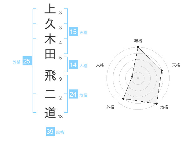 上久木田 飛二道さんの総格は39画の5点!
