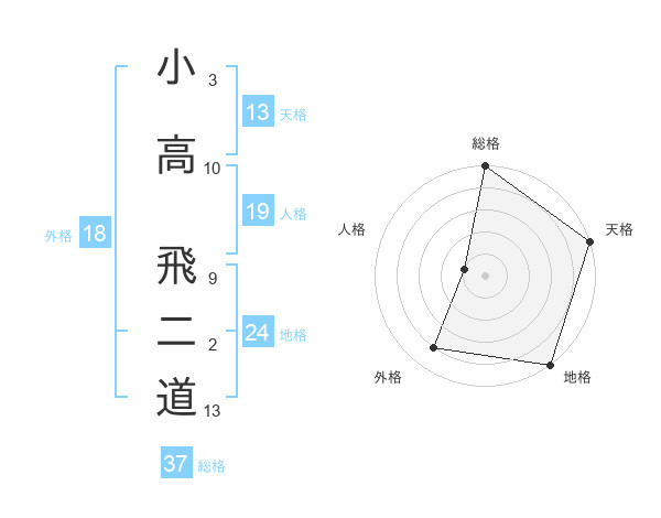 小高 飛二道さんを姓名の画数から五運を鑑定