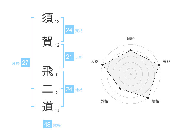 須賀 飛二道さんを姓名の画数から五運を鑑定