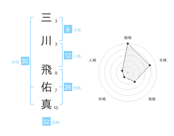 三川 飛佑真さんの総格は32画の5点!