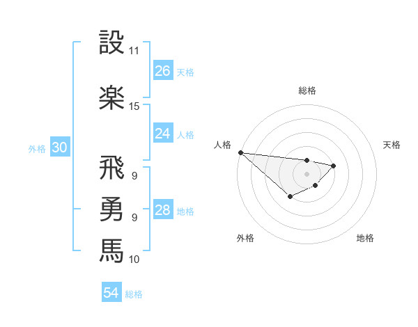 設楽 飛勇馬さんを姓名の画数から五運を鑑定