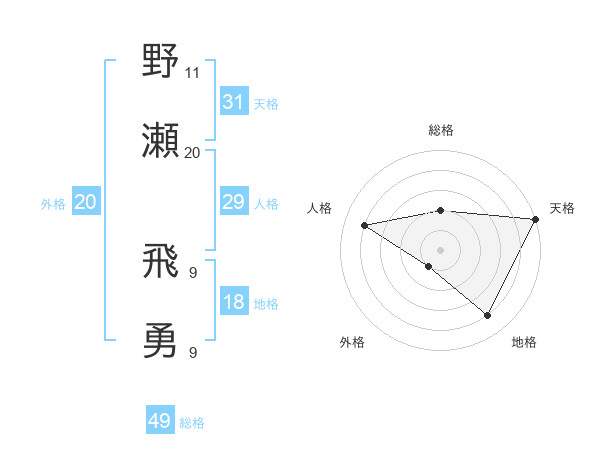 野瀬 飛勇さんの総格は49画の2点!