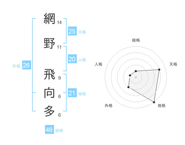 網野 飛向多さんを姓名の画数から五運を鑑定