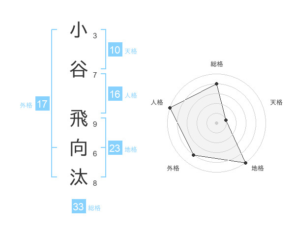 小谷 飛向汰さんを姓名の画数から五運を鑑定